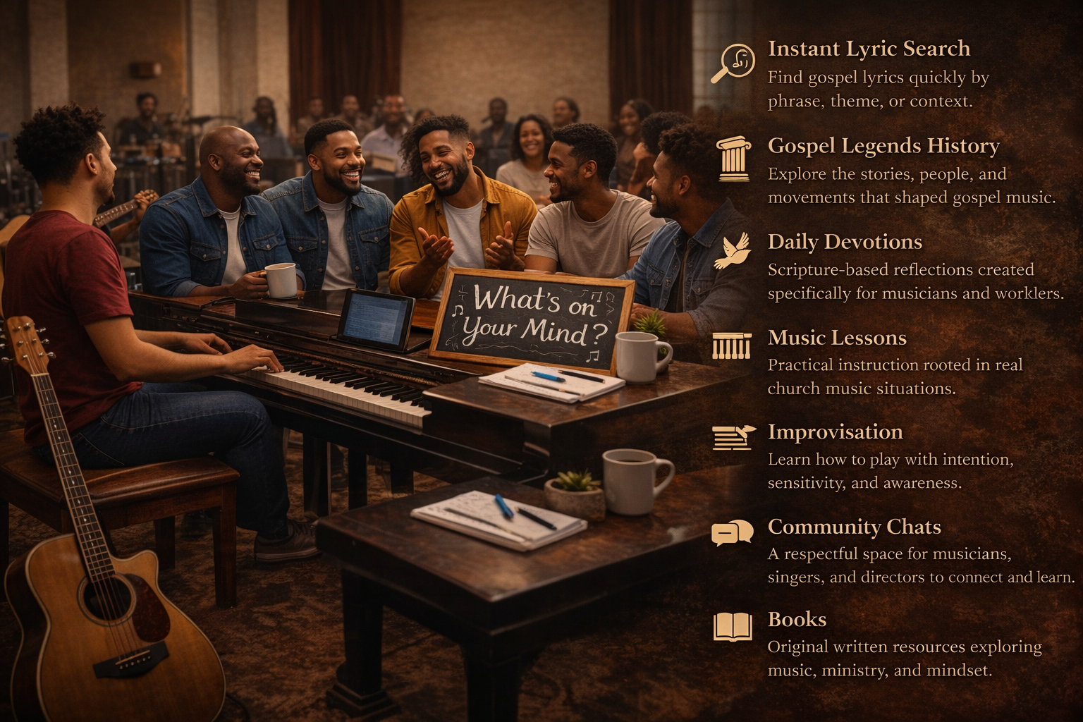 Instant Lyric Search. Gospel Legends History. Professional Music Lessons and Much more, All in one place.